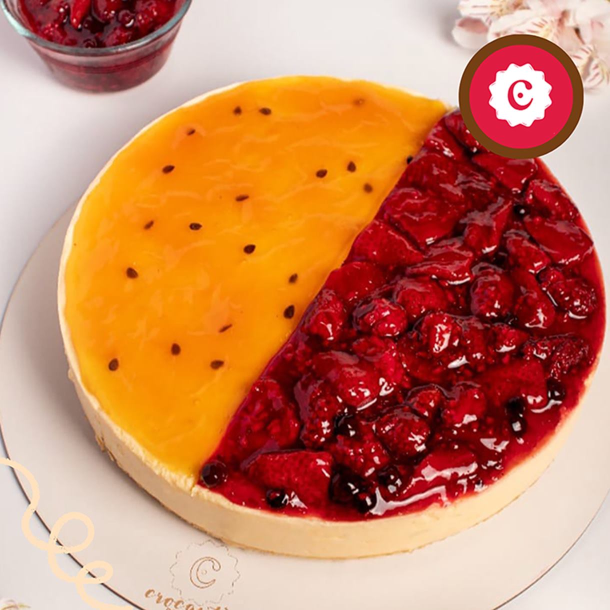 Deléitate con nuestro exquisito Cheese Cake Mixto, una sinfonía de frutos rojos y maracuyá.