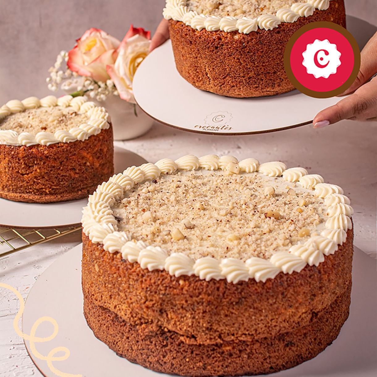 ¿Amante de la zanahoria? ¡Estás de suerte! Nuestra Torta de Zanahoria es la mezcla perfecta de sabores que te cautivarán. ¿Con nueces o sin nueces? ¡Tú decides!.